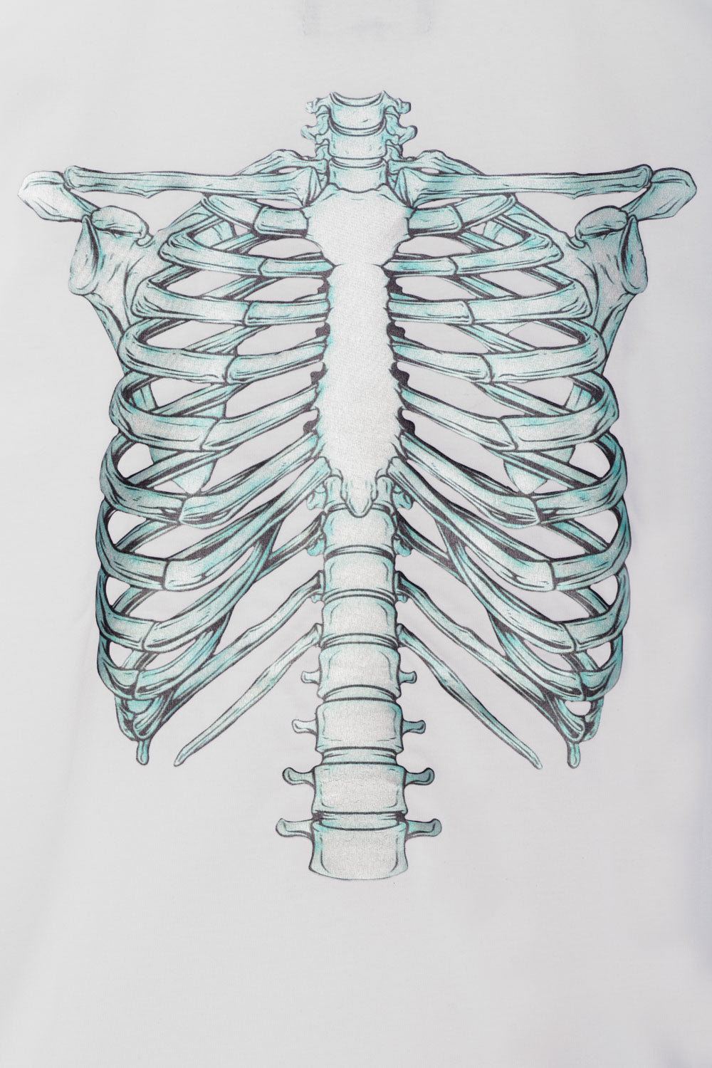Oversized T-shirt with holographic logo on the chest and 3D skeleton on the back