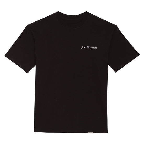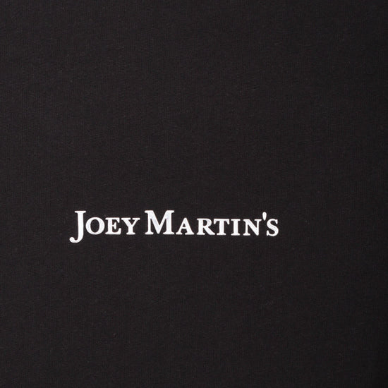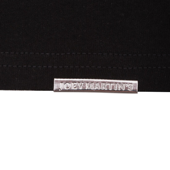T shirt oversize noir écusson logo silicone argent sur le coeur et plaque en métal gravée Joey Martin’s
